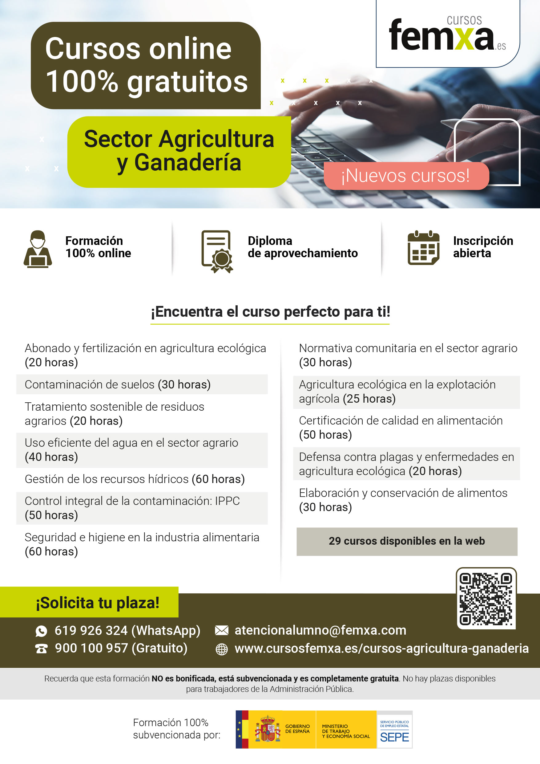 Podéis consultar todos los cursos, temarios y solicitar plaza desde la siguiente web: https://www.cursosfemxa.es/cursos-agricultura-ganaderia.: