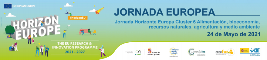 Día: 24 de mayo. Horario: de 11 a 13:30 horas. Jornada on line sobre Horizonte Europa: Cluster 6: Alimentacion, bioeconomía, recursos naturales, agricultura y medio ambiente. Dirigida a: empresas de los sectores de la alimentación, bioeconomía, recursos naturales, agricultura y medio ambiente. Objetivo de la jornada: Presentar las novedades del Clúster 6 de Horizonte Europa, el nuevo programa marco de financiación europea de la innovación y la investigación para el período 2021 – 2027, y que engloba temáticas tan amplias como la alimentación, la agricultura, los recursos naturales, el medio ambiente y la bioeconomía.Se profundizará en la convocatoria 2021 – 2022, y en los aspectos prácticos a tener en cuenta al presentar una propuesta, tanto las novedades que presenta Horizonte Europa, como el enfoque multiactor.